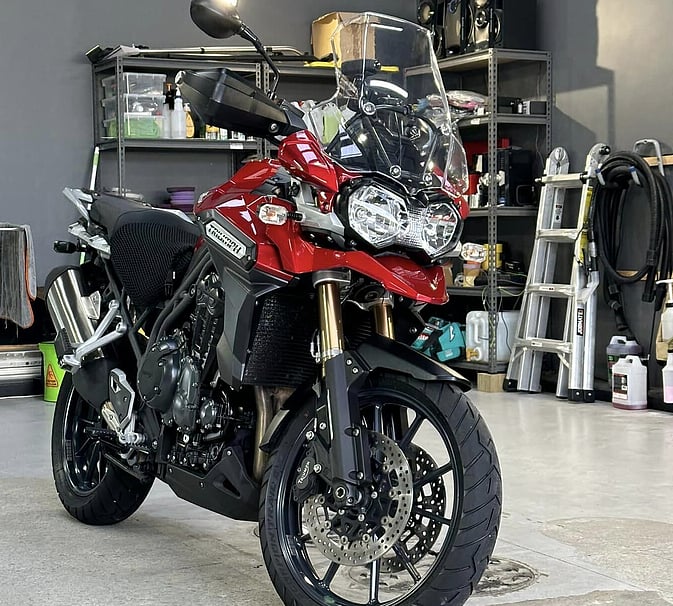 Triumph Tiger polished and protected in a FEYNLAB New Zealand Ceramic Coating. This Triumph not only looks the part but it is also easier to maintain with its super slick ceramic coating, forming a barrier between the surface and the outside elements. If you’re looking to protect your vehicle or motorcycle, contact the team at Alien Detailing today!